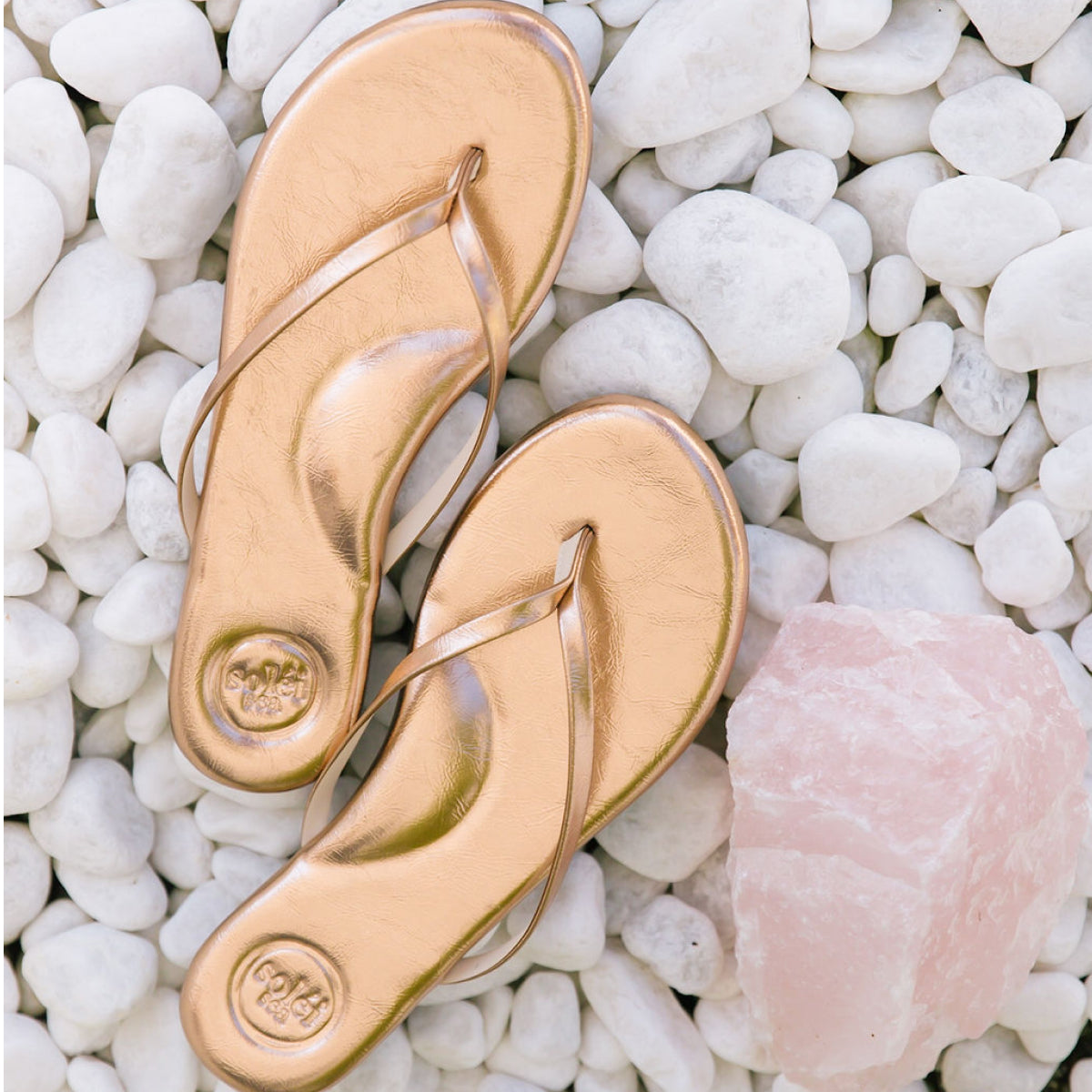 Enjoy the comfort of padded straps, footbed, and arch support, and the functionality of our water-resistant vegan leather & flexible non-slip rubber bottoms with our signature Soléi embossed waves.